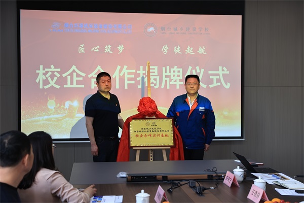 為進一步深化校企合作,實施人才強企戰略,實現校企合作共贏、共謀發展的美好愿景。2023年5月12日,公司與煙臺城鄉建設學校舉行校企合作揭牌儀式,在公司三樓第一會議室舉行。公司黨委書記、常務副總經理崔文剛,工會主席陳瑋,企業管理中心副主任王德祥,技師工作站站長林浩,校方教學分管領導張昌勇,國信部主任馮濤等一行5人,近年對我司人才招引工作給予大力支持的市直機關工委副書記蘇小峪、市委財經辦秘書科科長王衍應邀出席本次揭牌儀式。
