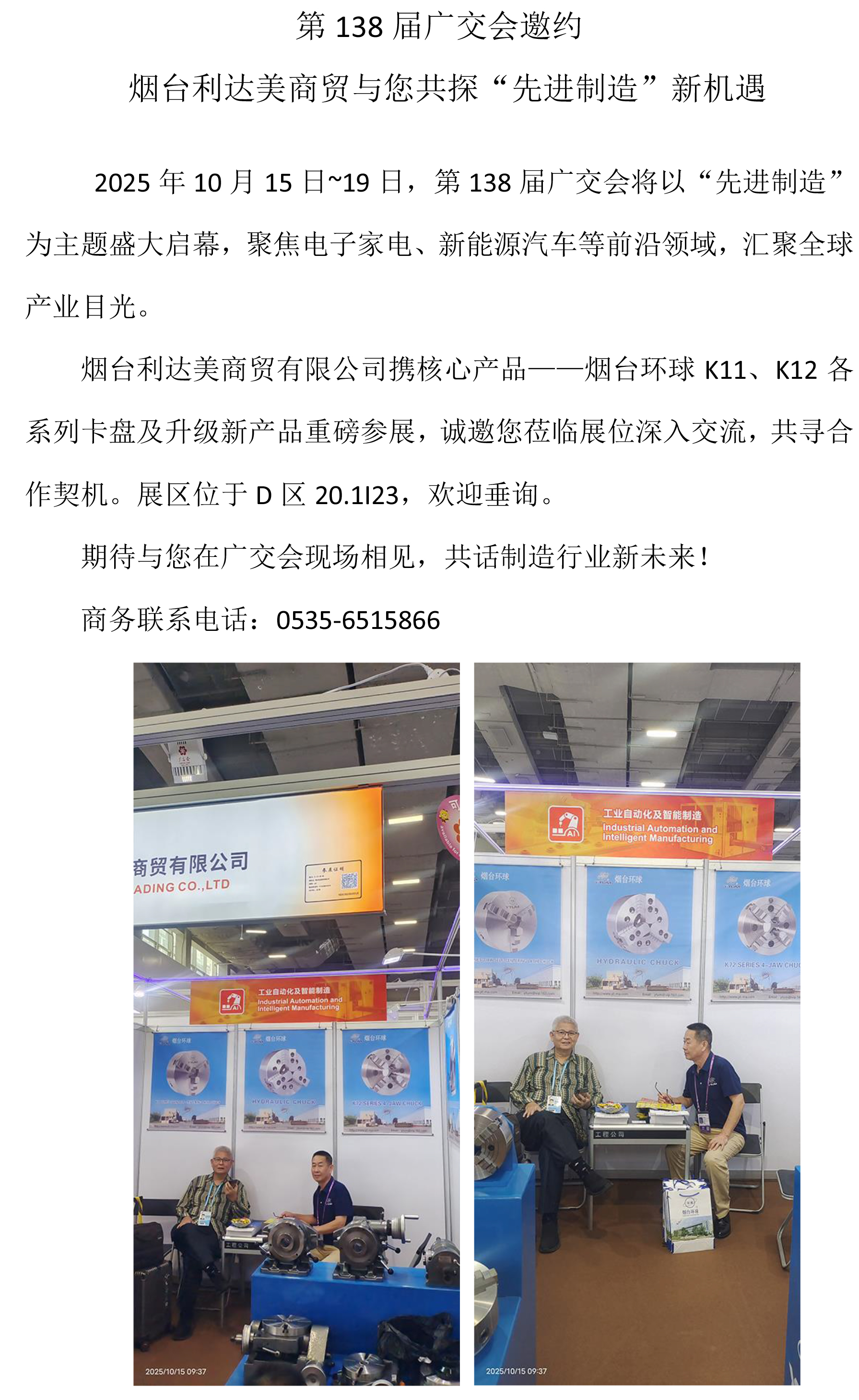 第138屆廣交會(huì)邀約 煙臺(tái)利達(dá)美商貿(mào)與您共探“先進(jìn)制造”新機(jī)遇